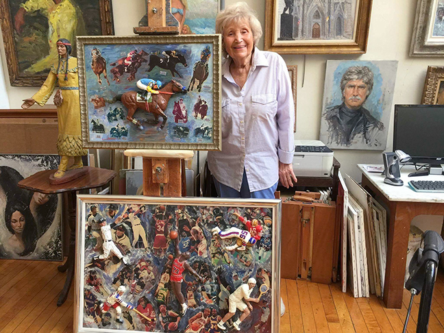 Sir Alex died in 2011, but the studio is still there, unchanged since the early 1970s. Nowadays the walls are covered by his oil paintings, and his favored themes are evident: New York cityscapes of Central Park, Fifth Avenue, and the Plaza Hotel, horses, and ballet dancers. Lots of ballet dancers. Today his widow, and fellow artist, Gloria lives in the studio surrounded by a life’s worth of art. She may be 94, but she carefully keeps everything relating to their artistic lives preserved and intact in the space. And her memory is sharp as a tack.
