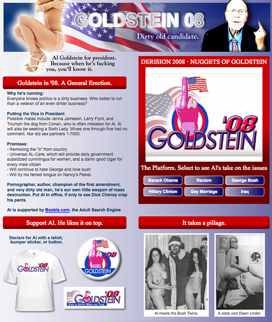 “Al Goldstein for President. Because when he’s fucking you, you’ll know it”.