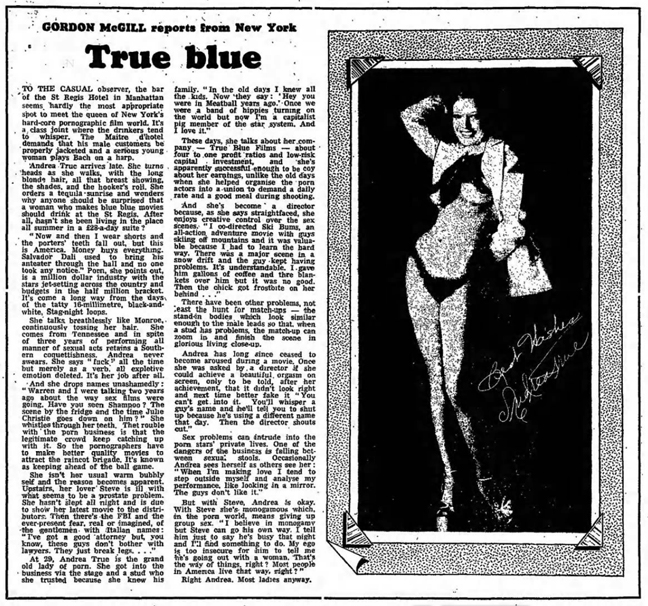 Andrea True: A selection of news articles and adult film artifacts, in chronological order (more or less..)