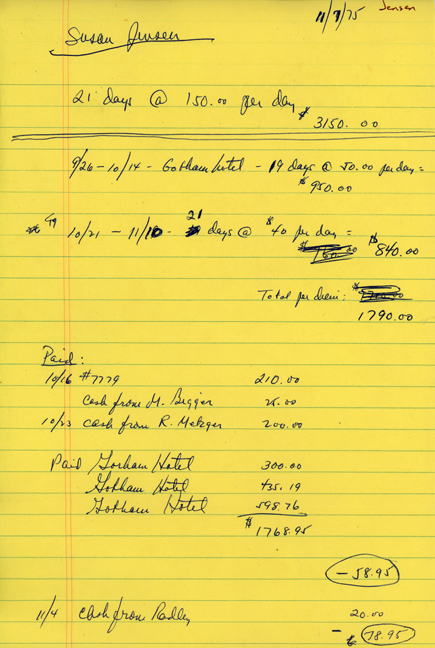 Radley responded to the list on 8th December 1975, by drawing up an additional payment for part of the losses claimed by Susan. However the amount he offered came to only $250 for the additional shooting days, and $150 for the personal items.