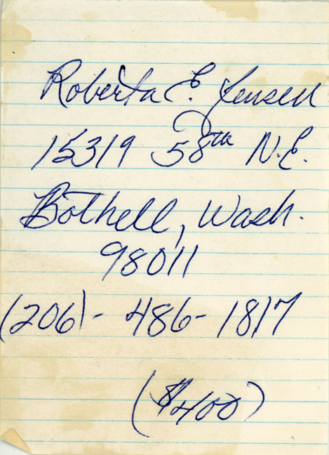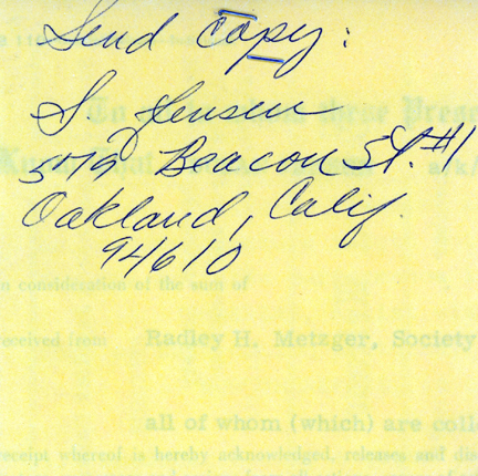 Susan requested that a copy be sent to her address at the time, in Oakland, California.