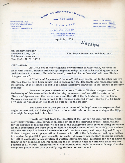 Click on the image below to read the full document from Audubon, dated May 24 1978.