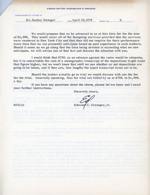 In the meantime, Ed Grainger asked Radley to summarize his recollection of the chronology of events. Radley wrote out what he remembered and submitted it to his lawyer.