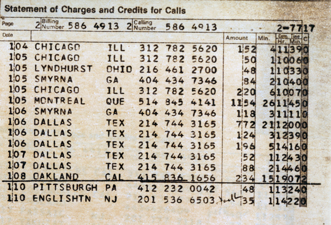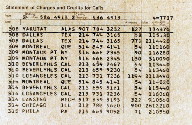 Radley also gave over phone records from Spring 1977 to show that he had tried to contact Susan in both California and Alaska to advise her of his intentions (see underlined records).